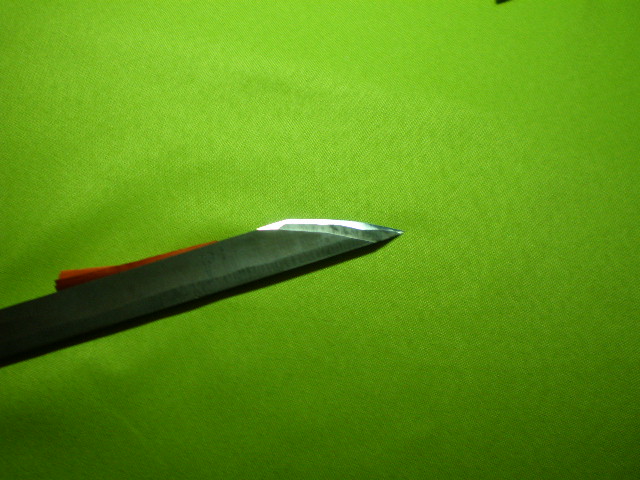 I use two hands of course. One holds the pivot point in the tool rest. The right hand guides the edge against the 6000x stone.